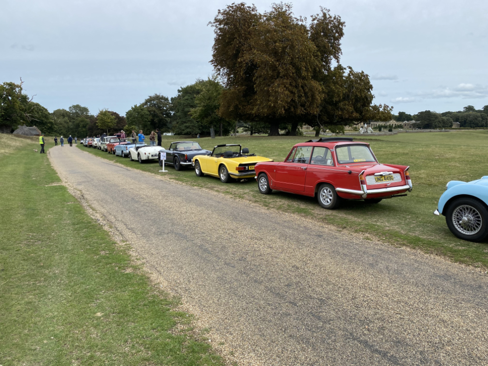 Sunday morning saw bright sunshine for the run to Holkham Hall (a relief after the weather forecast the preceding week), with 42 cars joining meeting at Forest Park. After the initial rush of cars at the entrance to the Hall, things settled down to a steady stream of Triumphs. We managed to make just over the 1/4 mile, made up of 84 Triumphs. Results were given for the teddy naming and won by Nichola and Ian, while the Peoples Choice was a TR2 owned by TR Wensum member Helen.